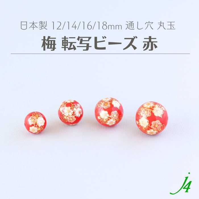 【 日本製 アクリル 転写 ビーズ 梅 柄 赤 丸玉 12mm / 14mm / 16mm / 18mm (3個~) ビーズ ショップ j4 】