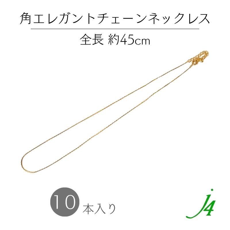 在庫販売!!【角エレガントチェーン ネックレス 約45cm(チェーン~チェーン) ライトゴールド 10本入り ビーズ j4】