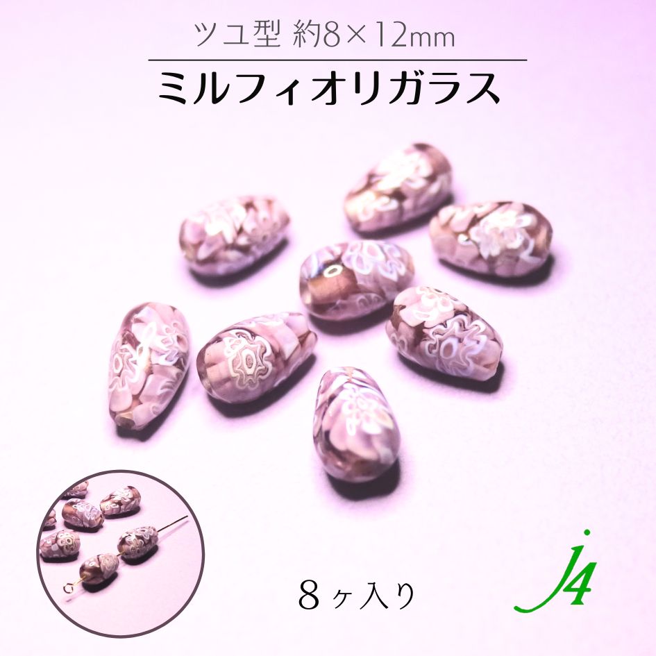 在庫限り!!【 ミルフィオリガラス ツユ 型 約12×8mm 8ヶ入り ビーズ ショップ j4 】