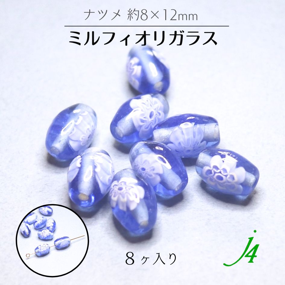 在庫限り!!【 ミルフィオリ ガラス ナツメ 約12×8mm 8ヶ入り ビーズ ショップ j4 】