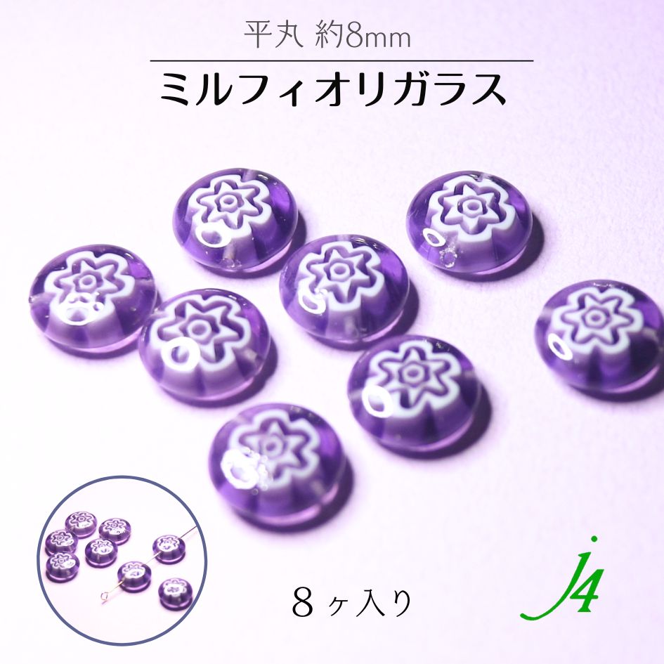 在庫限り!!【 ミルフィオリ ガラス 平丸 約8mm 8ヶ入り ビーズ ショップ j4 】