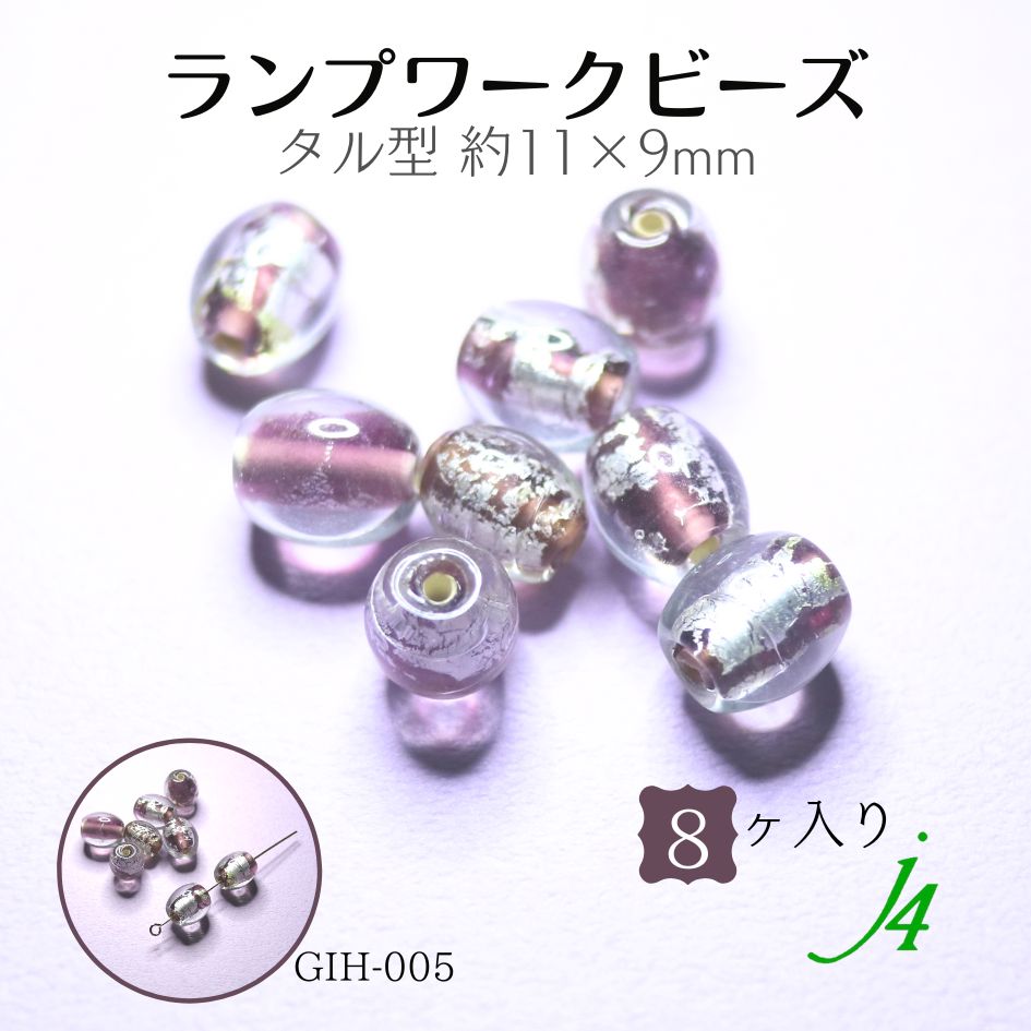 在庫限り!!【 ランプワーク ガラス ビーズ タル型 パープル × シルバーホイル 約11×9mm 8ヶ入り ビーズ ショップ j4 】