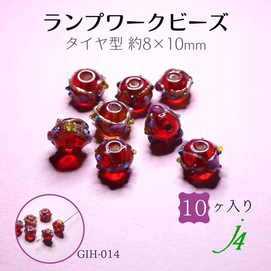 在庫限り!!【 ランプワーク ビーズ ガラス タイヤ型 レッド 約8×10mm 10ヶ入り ビーズ ショップ j4 】
