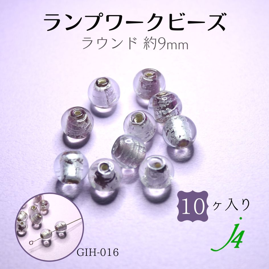 在庫限り!!【 ランプワーク ビーズ ガラス ラウンド パープル × シルバーホイル 約9mm 10ヶ入り ビーズ ショップ j4 】