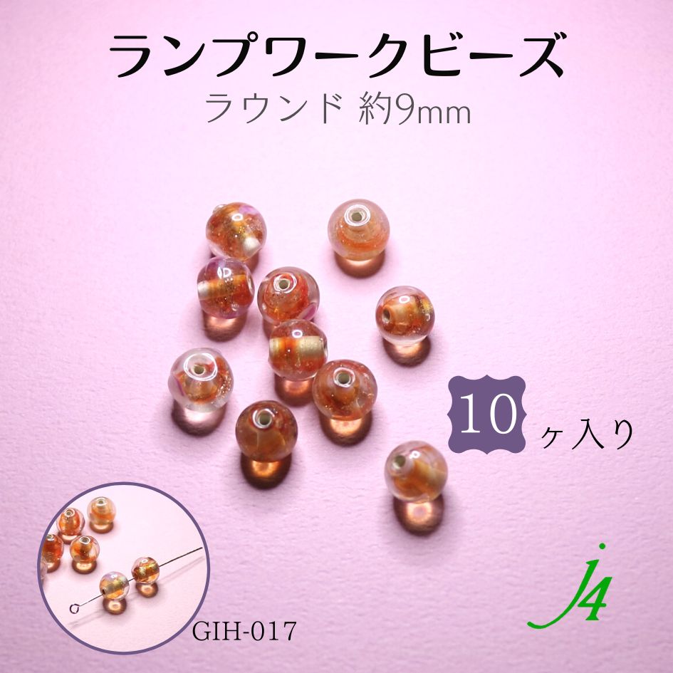 在庫限り!!【 ランプワーク ビーズ ガラス ラウンド オレンジ × ゴールドラメ入り 約9mm 10ヶ入り ビーズ ショップ j4 】
