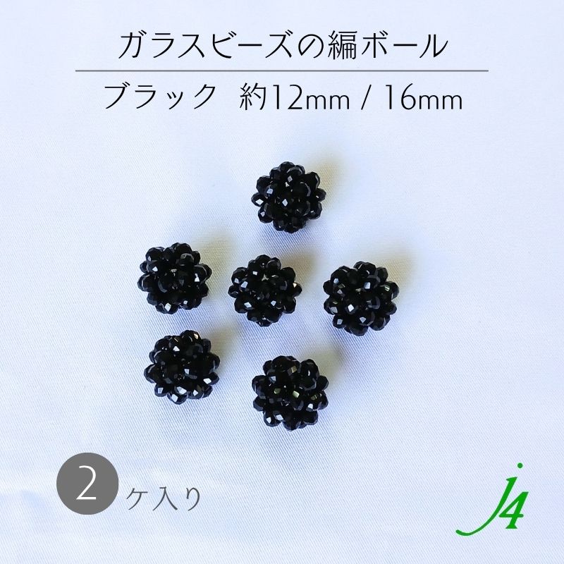 【ブラック ガラス の 編ボール 約12mm 16mm 2ヶ入 ビーズ ショップ j4 】
