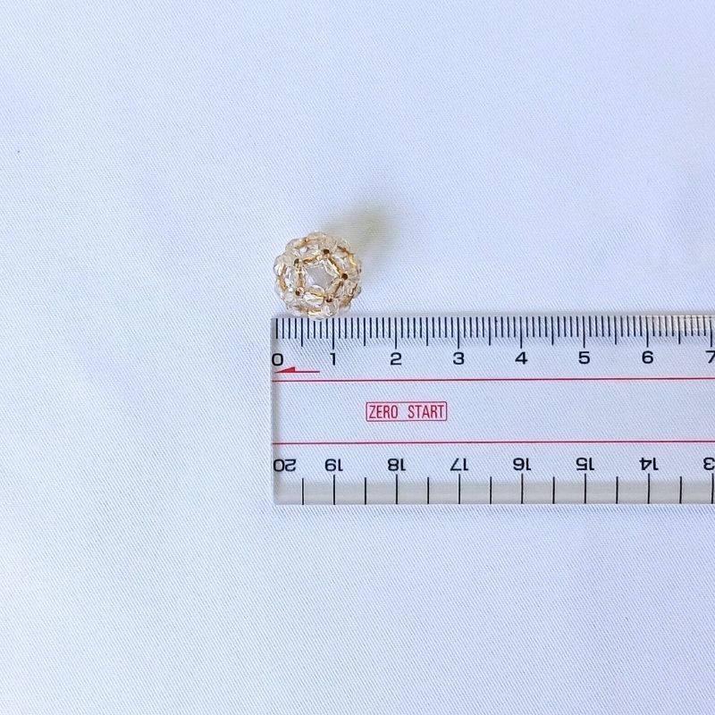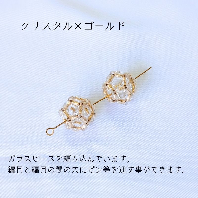 ◆ 3mmのファイヤポリシュを手仕事で編み込みボール状にしています。 ◆ 編目の間の好きな箇所でピンやチェーンを通す事ができます。 |