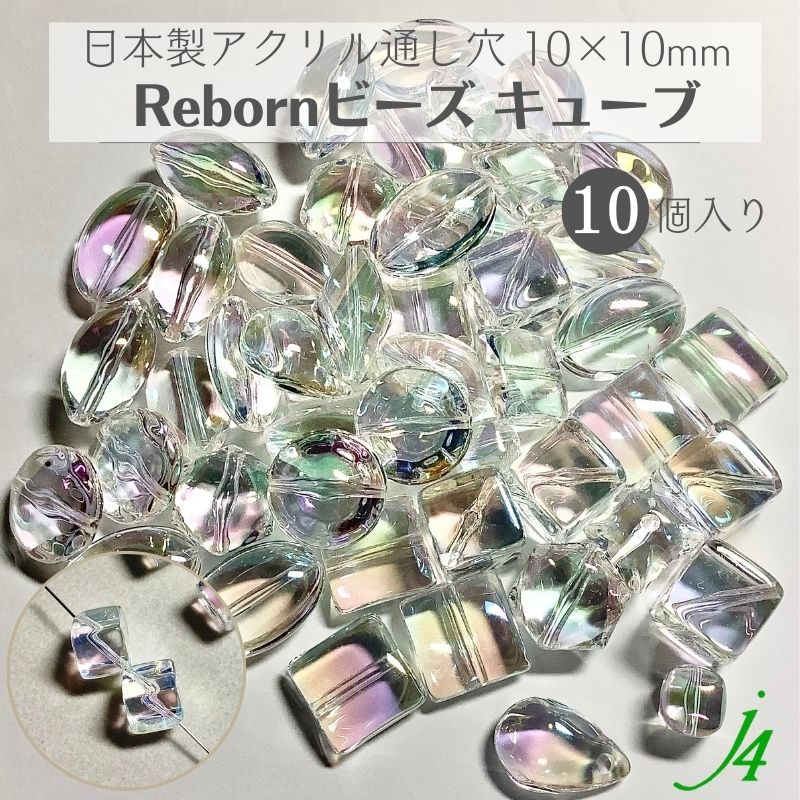 日本製【 リボーンビーズ キューブ クリスタルオーロラ 10×10mm (10ヶ) ビーズ ショップ j4 】