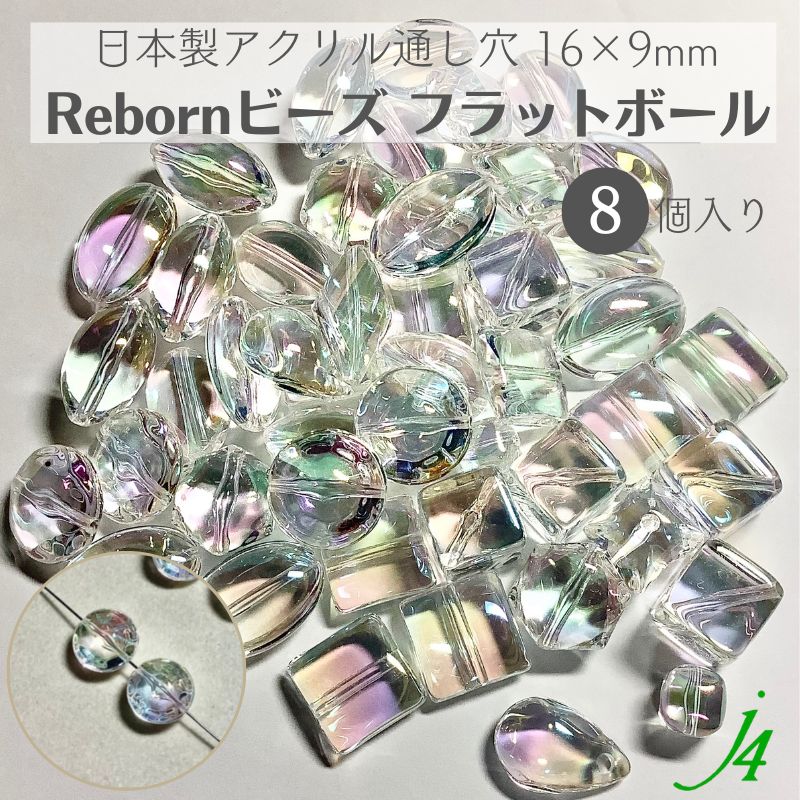 日本製【リボーンビーズ フラットボール クリスタル オーロラ 16×9mm (8ヶ) ビーズ ショップ j4 】