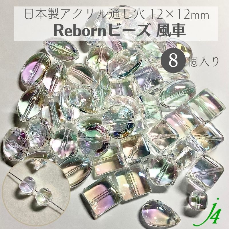 日本製【リボーンビーズ 風車 クリスタル オーロラ 約12×12mm 8個入り ビーズショップ j4 】