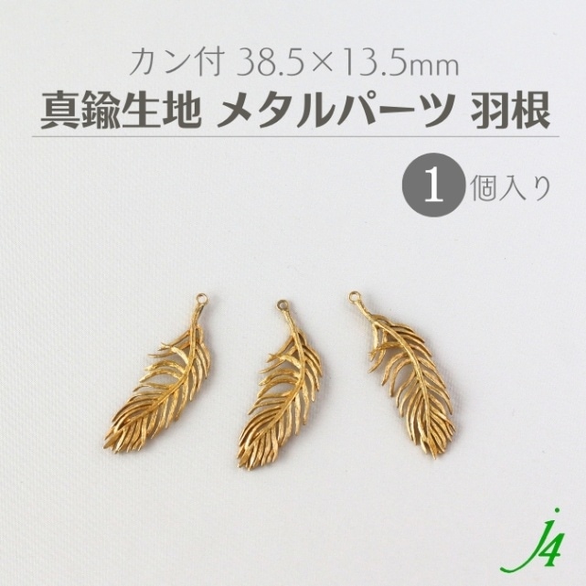 真鍮生地 メタルパーツ 羽根 カン付 38.5x13.5mm (1個) j4