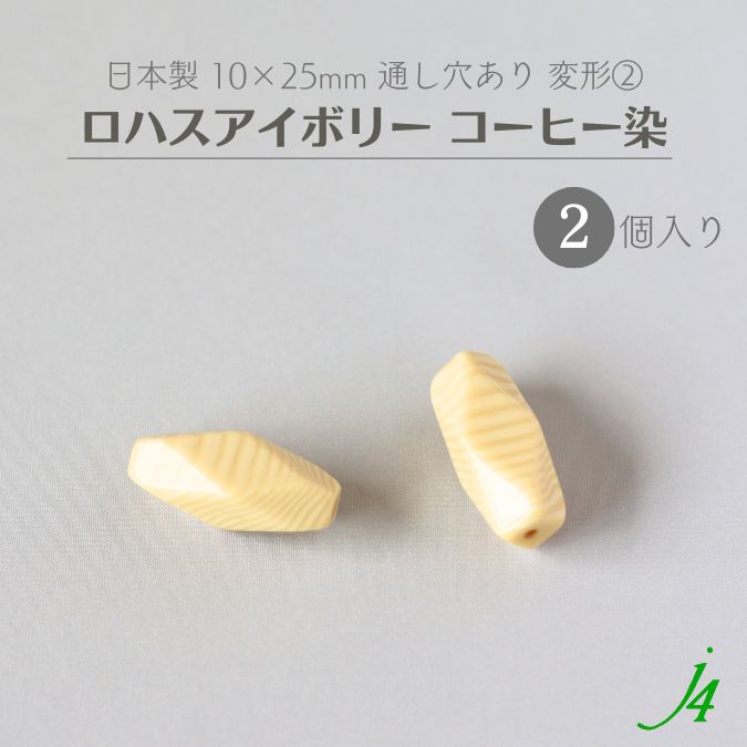 ヴィンテージ!!【 日本製 ロハスアイボリー コーヒー染め 変形② 約10×25mm 2個入り j4】