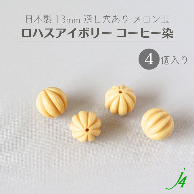 ヴィンテージ!!【 日本製 ロハスアイボリー コーヒー染め メロン玉 約13mm 4個入り j4】