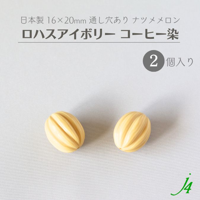 ヴィンテージ!!【 日本製 ロハスアイボリー コーヒー染め ナツメメロン玉 約16×20mm 2個入り j4】