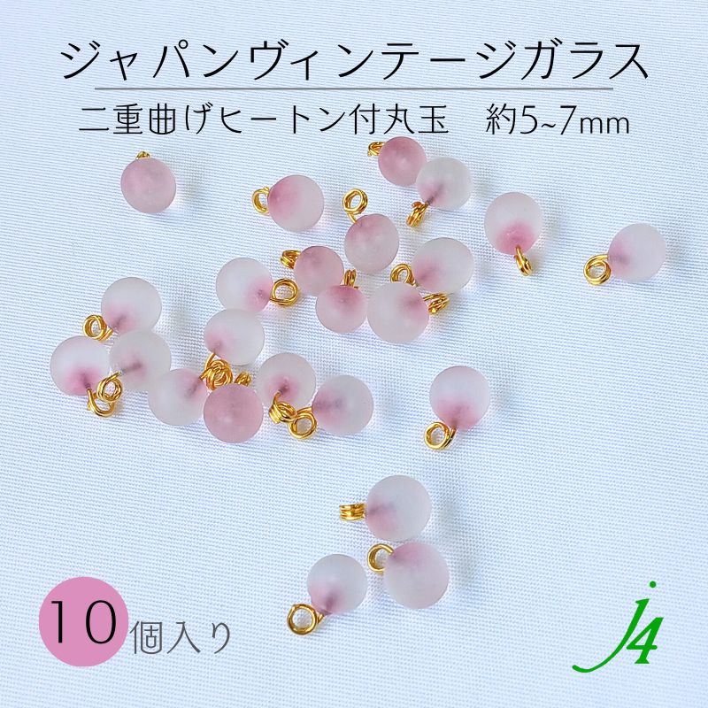 【 ジャパンヴィンテージ ガラス 二重曲げカン付 丸玉 ピンク 約5~7mm 10ヶ入 ビーズ ショップ j4 】