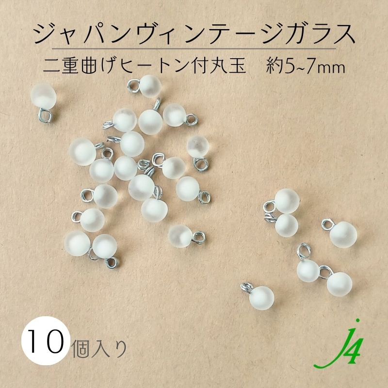 【 ジャパンヴィンテージ ガラス 二重曲げカン付 丸玉 ホワイト 約5~7mm 10ヶ入 ビーズ ショップ j4 】