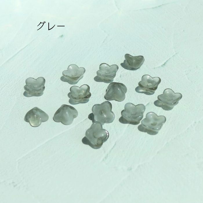 日本製【ジャパンヴィンテージ ガラス 五弁花 一つ穴 約5×7mm 10個入り