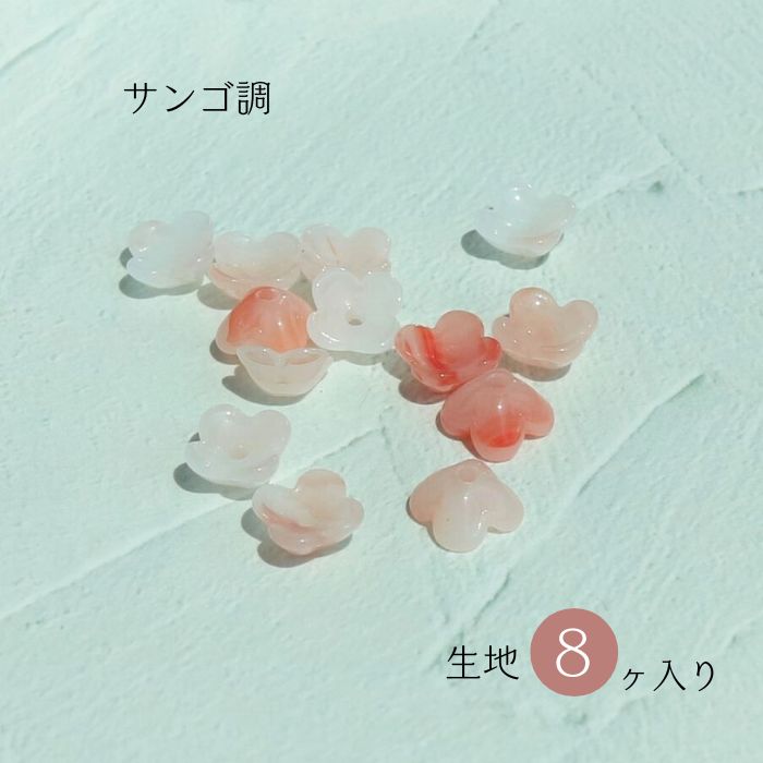 日本製!!【 ジャパンヴィンテージ ガラス 5弁花 ボタン足 約8mm 8ヶ入 通し穴有り ビーズ ショップ j4 】