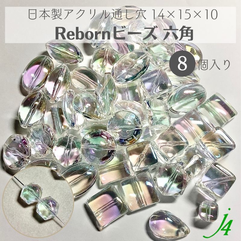 日本製【 アクリル リボーン ビーズ クリスタル オーロラ 変形 六角 14×15×10mm ビーズ ショップ j4 】