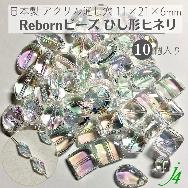 日本製【 アクリル リボーン ビーズ ひし形 ヒネリ 11×21×6mm j4 】