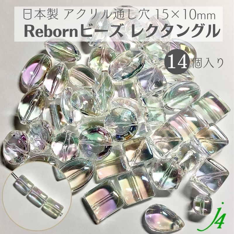 日本製【リボーン ビーズ レクタングル クリスタルオーロラ 15×10mm 14個入り ビーズショップ j4 】