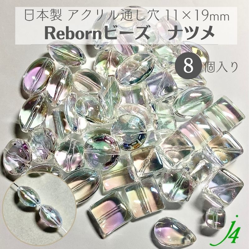 日本製【アクリル クリスタル オーロラ リボーン ビーズ ナツメ 約11×19mm 8個入り ビーズショップ j4 】