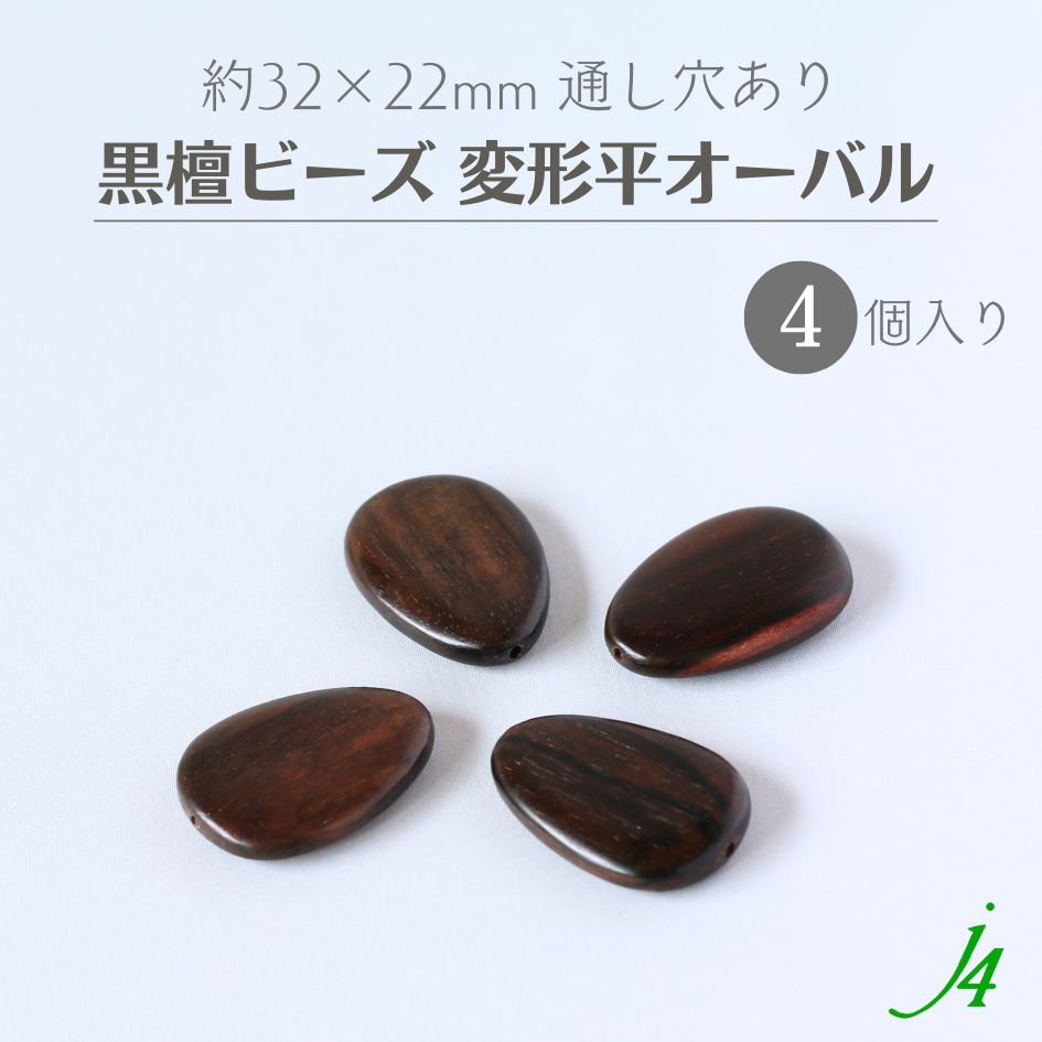 【 黒檀 ウッド ビーズ 変形 平 オーバル 約32×22mm 4ヶ入り ビーズ ショップ j4 】