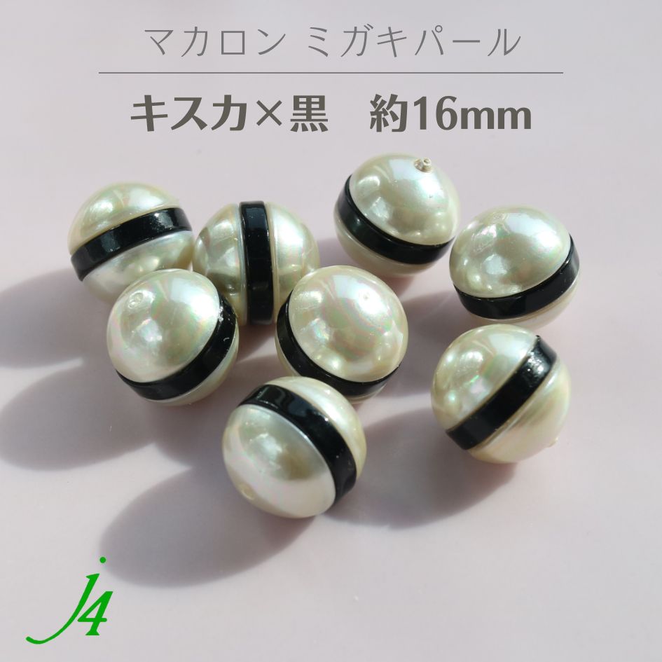 【 マカロン ミガキ パール キスカ×黒 約16mm 2ヶ入り ビーズ ショップ j4 】