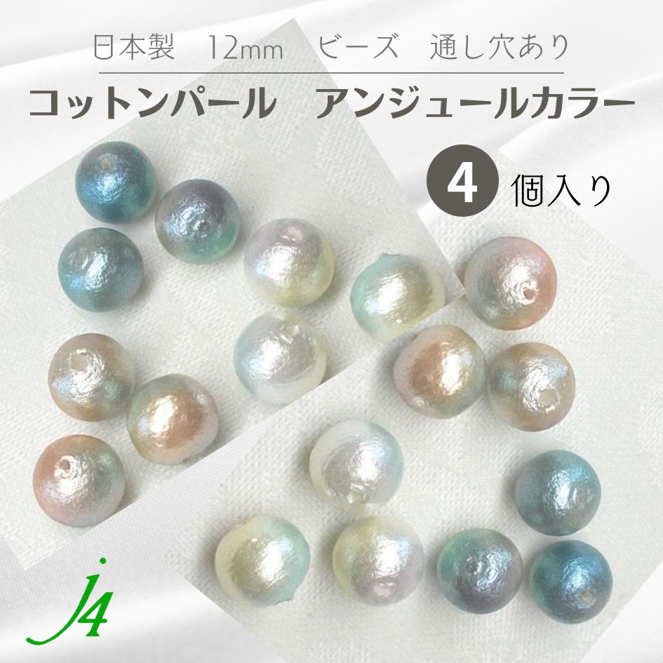 公式限定!!【 コットン パール アンジュール カラー 12mm 通し穴 4ヶ入り ビーズ ショップ j4 】