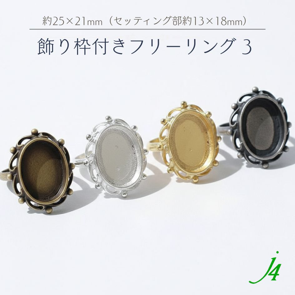 公式 Web 限定販売!!【 飾り枠付きフリーリング 3 枠約25×21mm(セッティング部約13×18mm) 1ヶ入り ビーズ ショップ j4 】