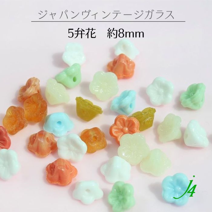 日本製!!【 ジャパンヴィンテージ ガラス 5弁花 ボタン足 約8mm 8ヶ入 通し穴有り ビーズ ショップ j4 】