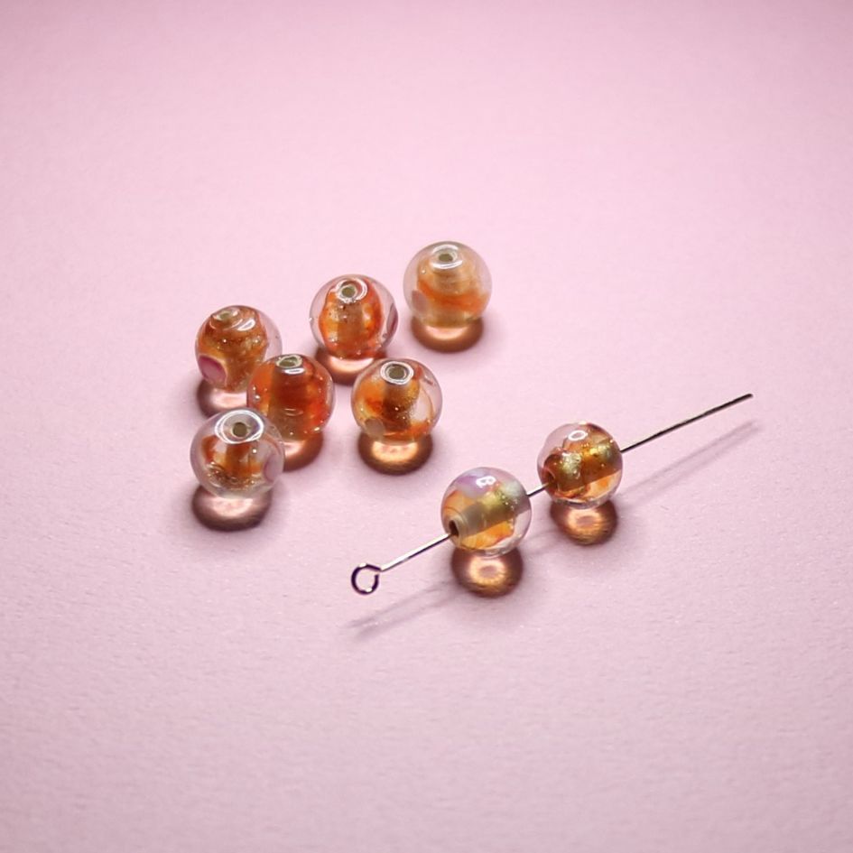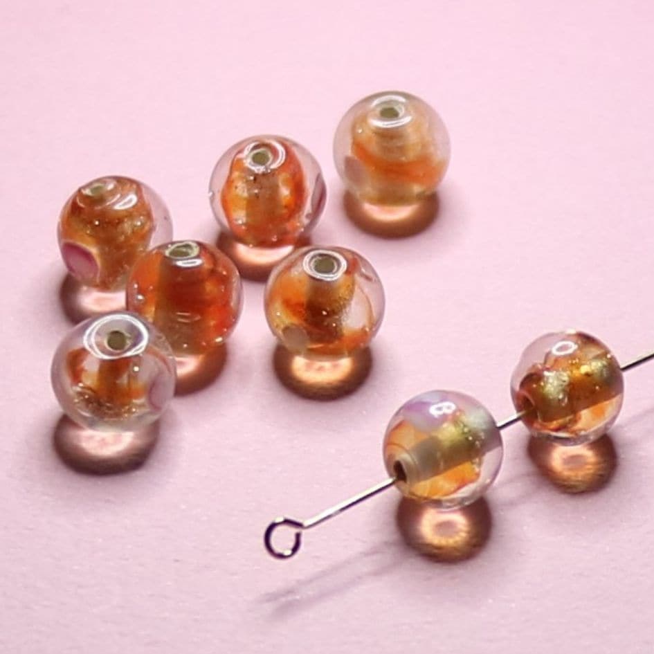 在庫限り!!【 ランプワーク ビーズ ガラス ラウンド オレンジ × シルバーホイル 約7mm 12ヶ入り ビーズ ショップ j4 】