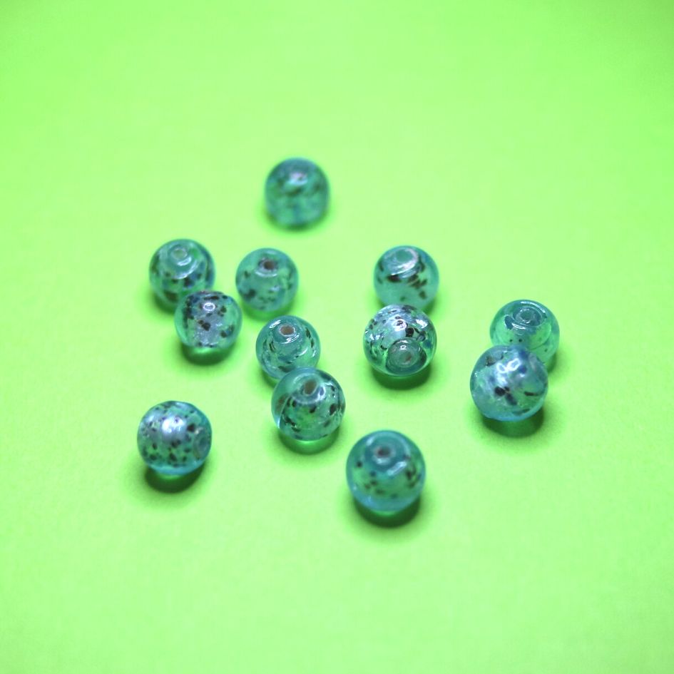 在庫限り!!【 ランプワーク ビーズ ガラス ラウンド ピンク × グリーン マーブル 約7mm 12ヶ入り ビーズ ショップ j4 】
