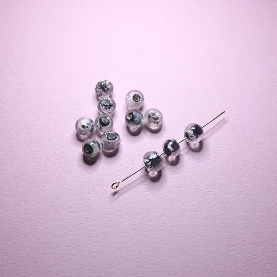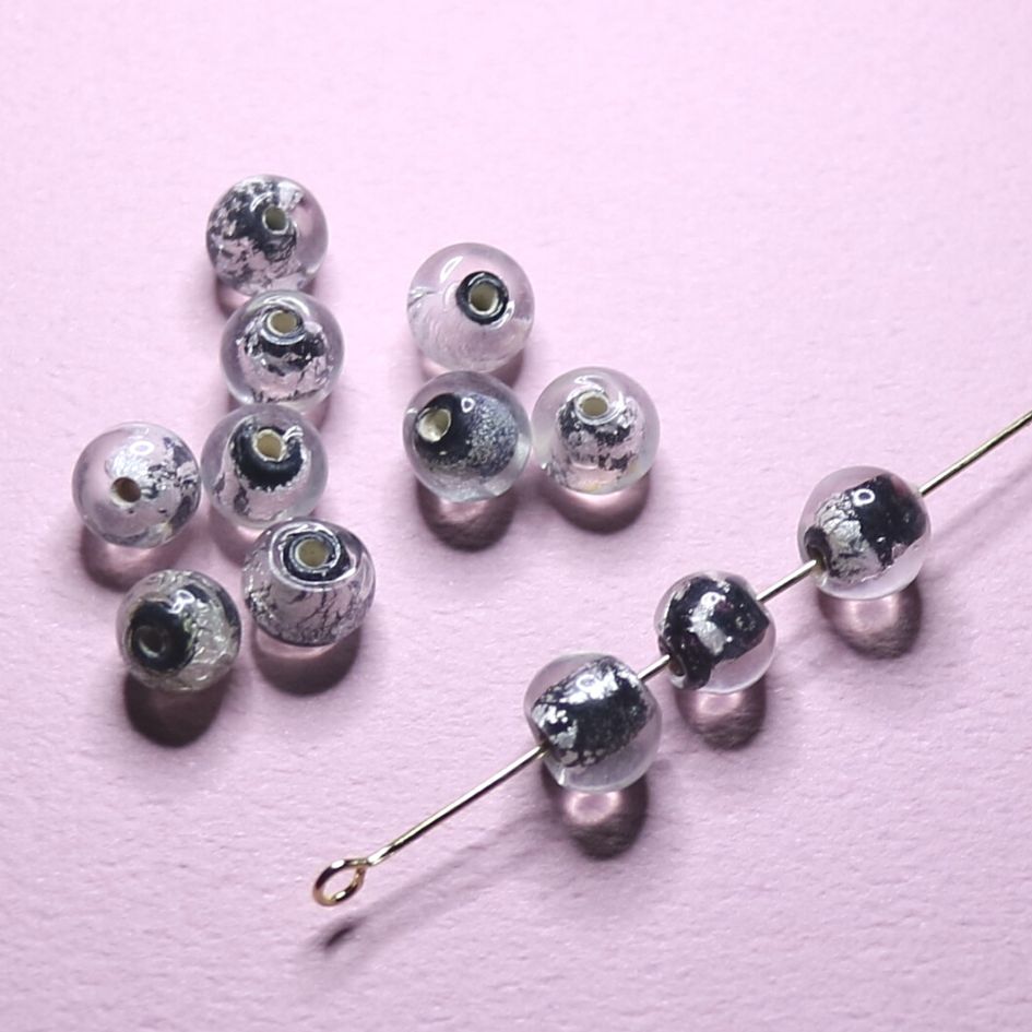 在庫限り!!【 ランプワークビーズ 平丸 約7mm シルバーホイル 8ヶ入り ビーズ ショップ j4 】
