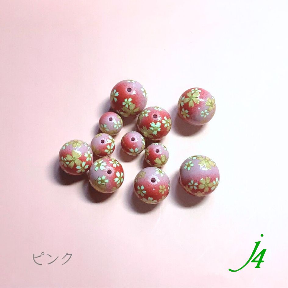 日本製!!【 アクリル 転写 ビーズ 丸玉 さくら ツートン 10mm (4ヶ入り) ビーズ ショップ j4 】