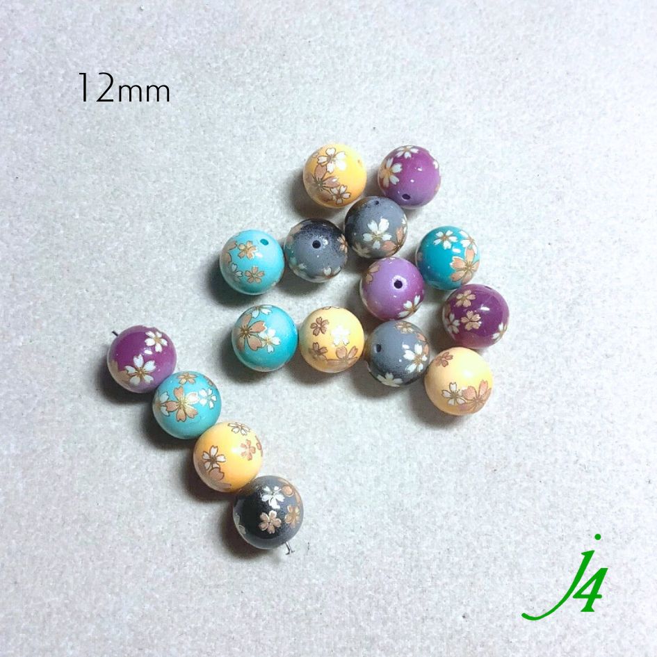 日本製!!【 アクリル 転写 ビーズ 丸玉 さくら ツートン 14mm (4ヶ入り) ビーズ ショップ j4 】