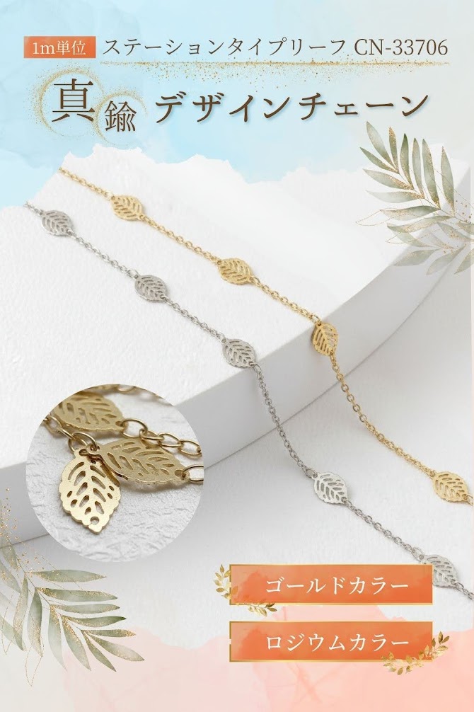 | 商品名 | 【 m単位販売 真鍮 変形 デザイン チェーン ステーション リーフ CN-33706 】 |