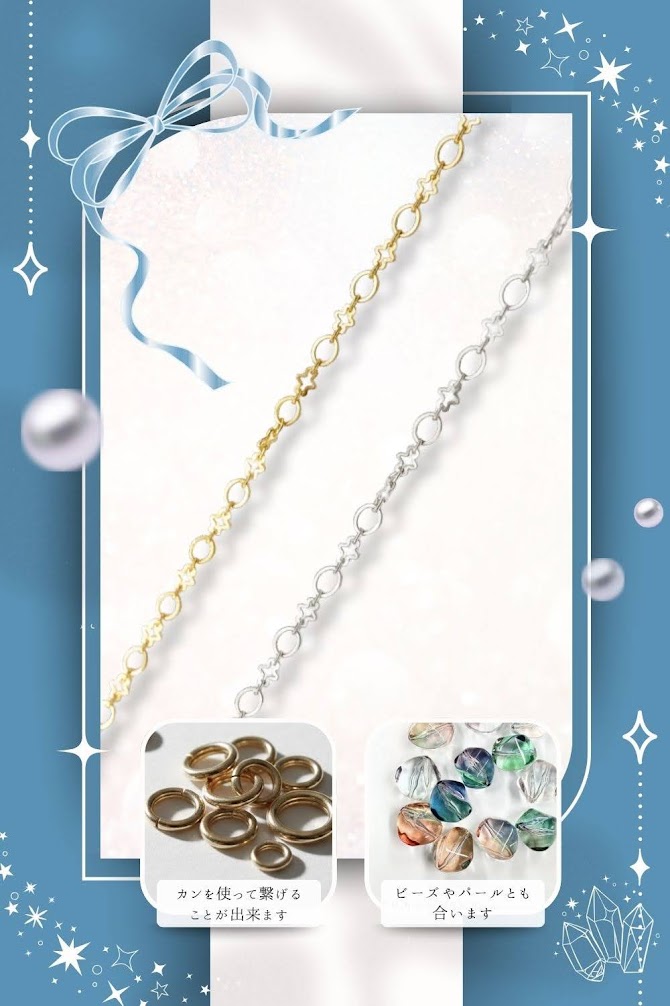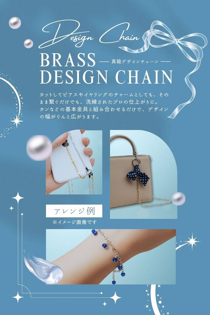 ◆ m単位の切り売りカットチェーン。お好みの長さをご指定ください。 ◆ ネックレスやブレスレット・イヤリングなどアクセサリーだけではなくクラフトの材料など幅広く作品作りにお使いいただけます。 |