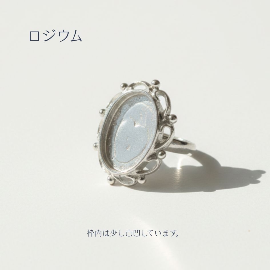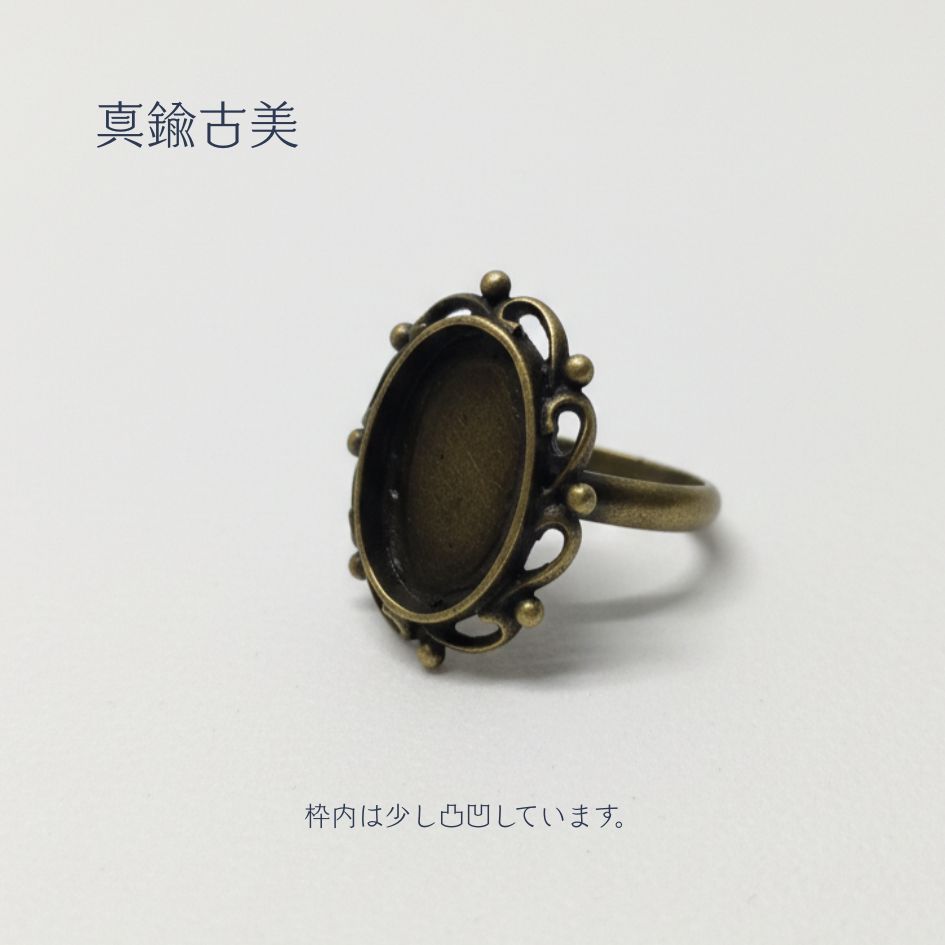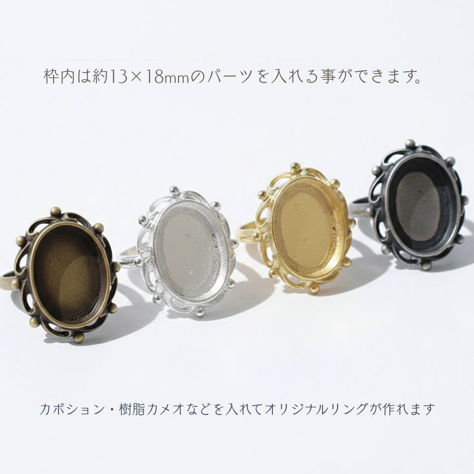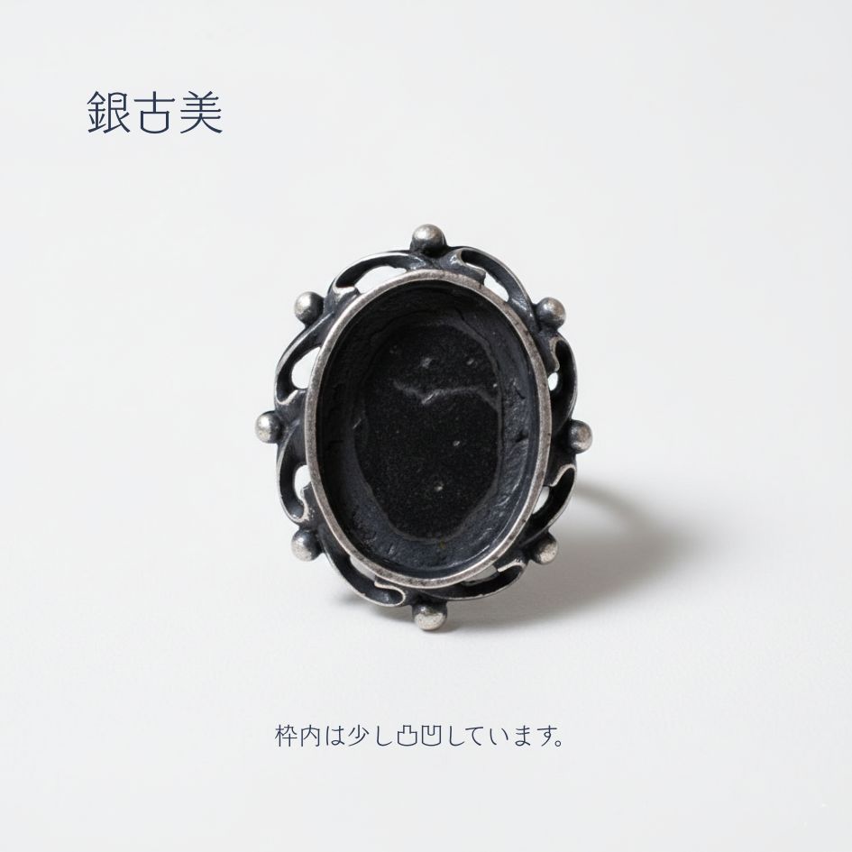 ◆ j4オリジナルのデザインです。 ◆ 型に鈴を流し込み作ったキャストです。 ◆ 枠内のサイズは、約13×18mmですお好きなカボション等を入れてオリジナルリングが作成できます。 |